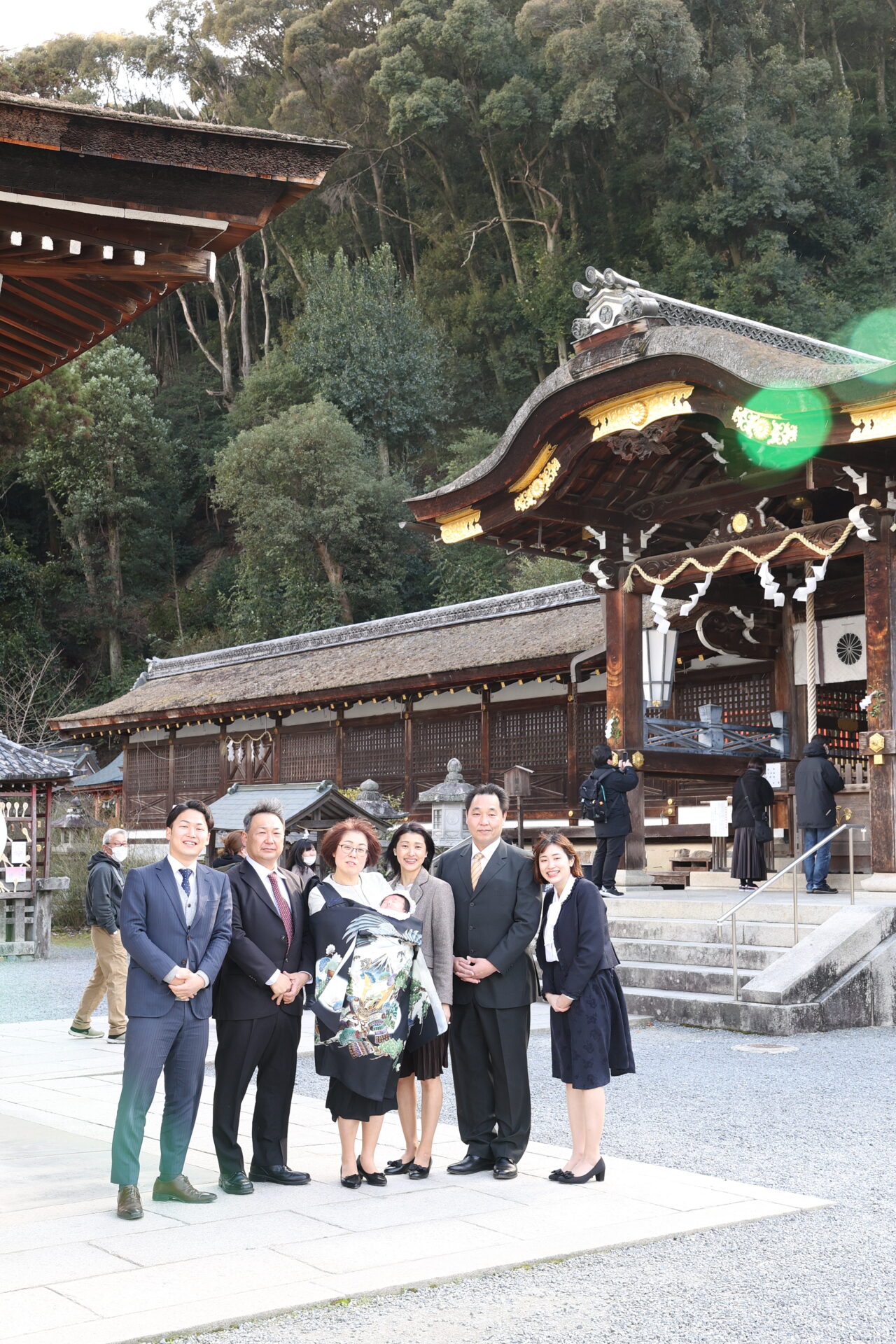 スタジオと同じカメラマン・スタッフが同行し、松尾大社の境内でご家族の記念日をしっかりと撮影させていただきます。