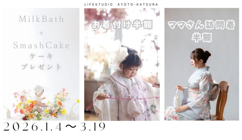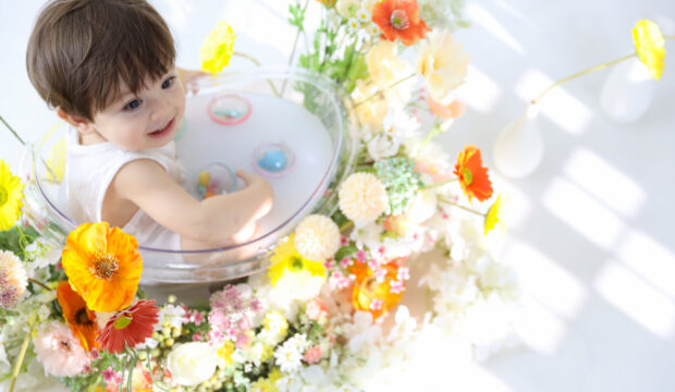 2026年1月より待望のミルクバス撮影がスタートします。当スタジオのミルクバス撮影はお花に囲まれた特別仕様。非日常的な体験をしていただけます。さらに、今回はミルクバス新登場記念といたしまして、12日よりミルクバス撮影をご希望された方には通常2,200円のスマッシュケーキを無料でプレゼントさせていただきます。